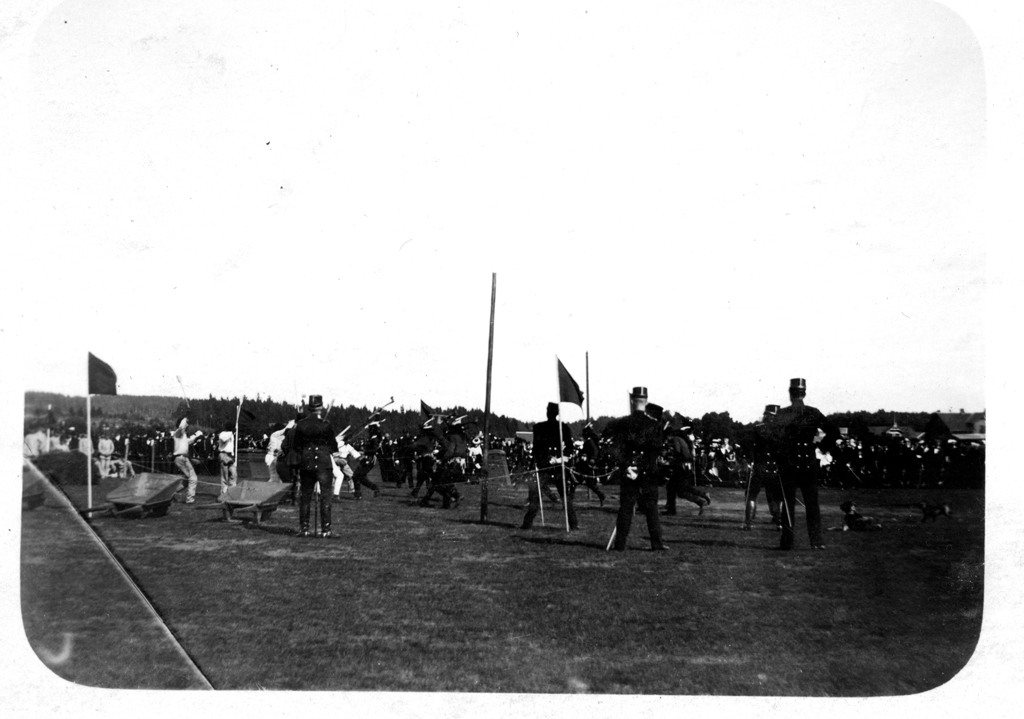 Kungliga Älvsborgs regemente på Fristad Hed, slutet av 1800-talet. Midsommarfest på Fristad Hed.