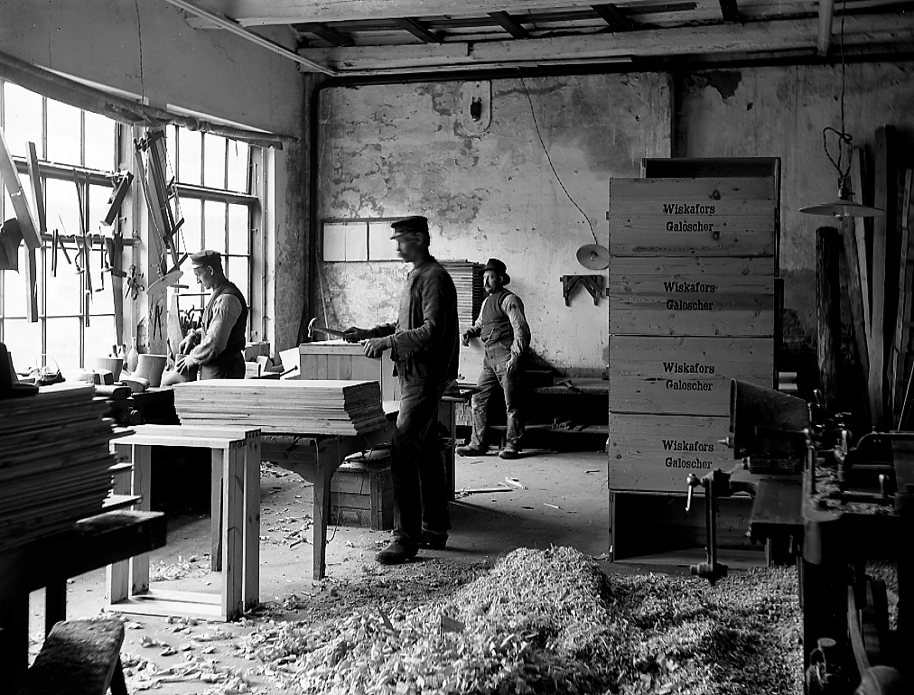Galoschfabriken i Svaneholm, lådtillverkning.