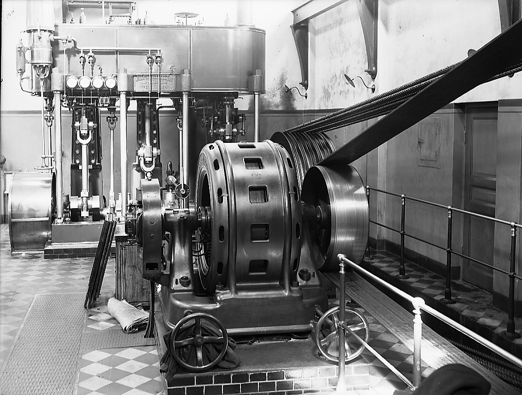 Bergengrens fabrik Viskaholm, maskinrummet ångmaskin och elmotor.