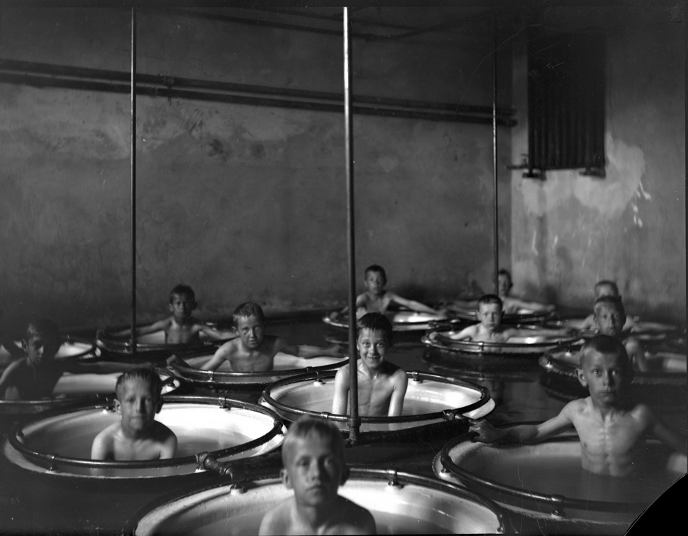 Norrby folkskolas bad, gossar i badbaljorna.