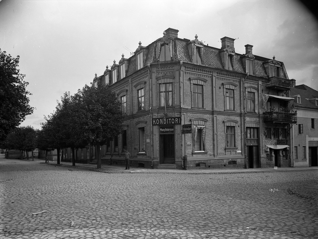Konditor Olhlssons hus i kv. Perseus Lilla Brogatan Västerlånggatan.