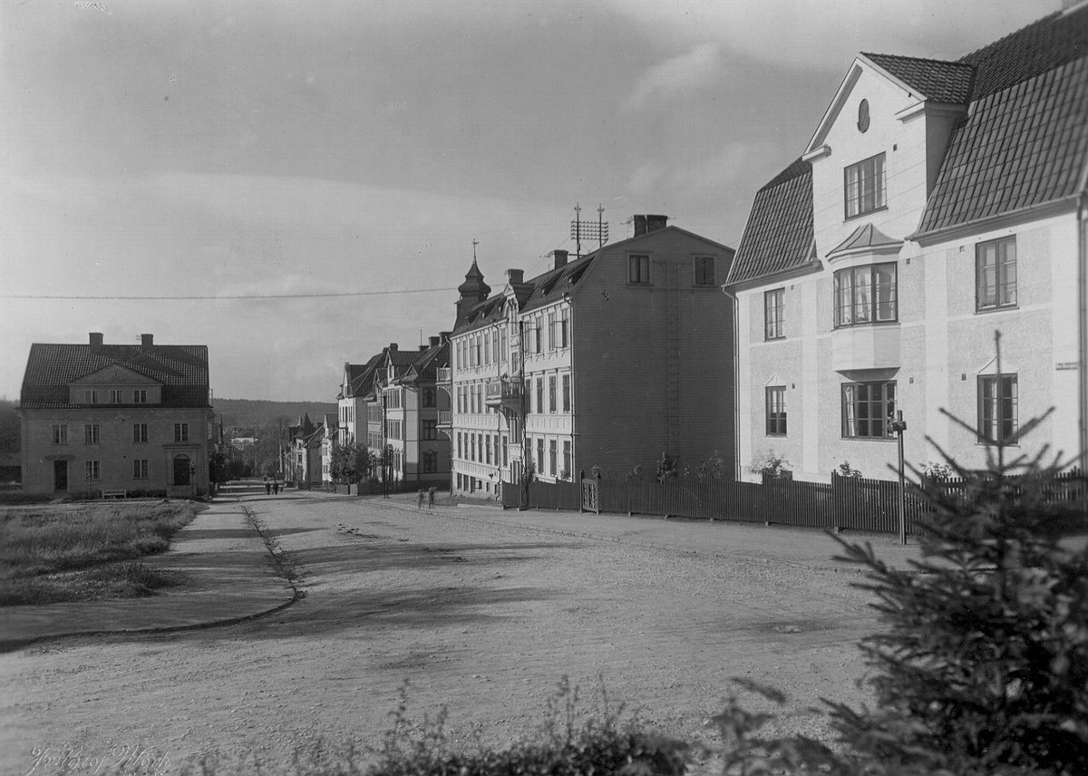 Övre Kvarngatan mot väster med kvarteret Lärkan t.h. år 1924.