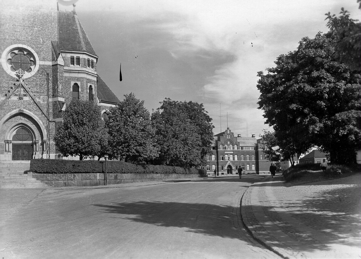 Läroverksgatan mot öster med Läroverket i fonden år 1926.