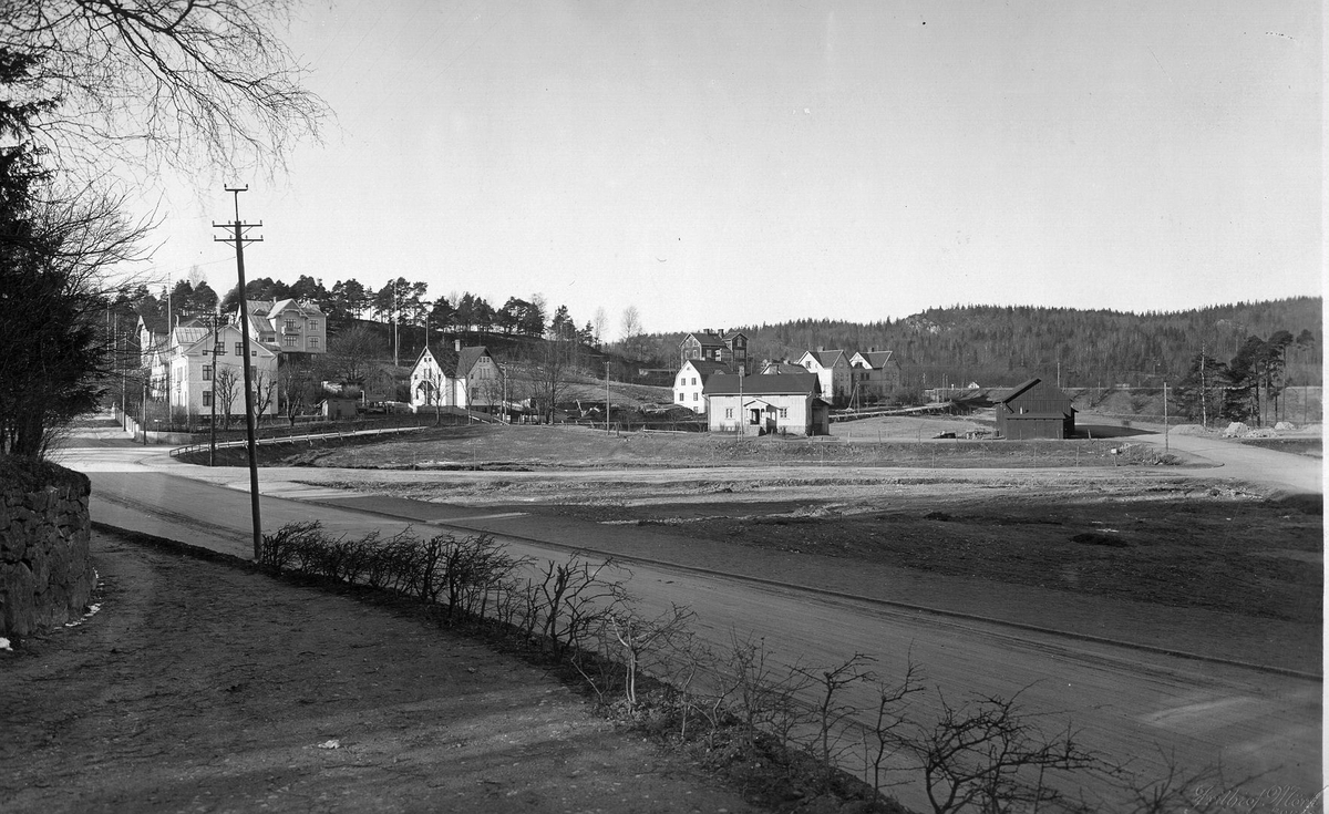 Parkgatan mot väster med kvarteret Almen i mellanplanet t.v. år 1925.