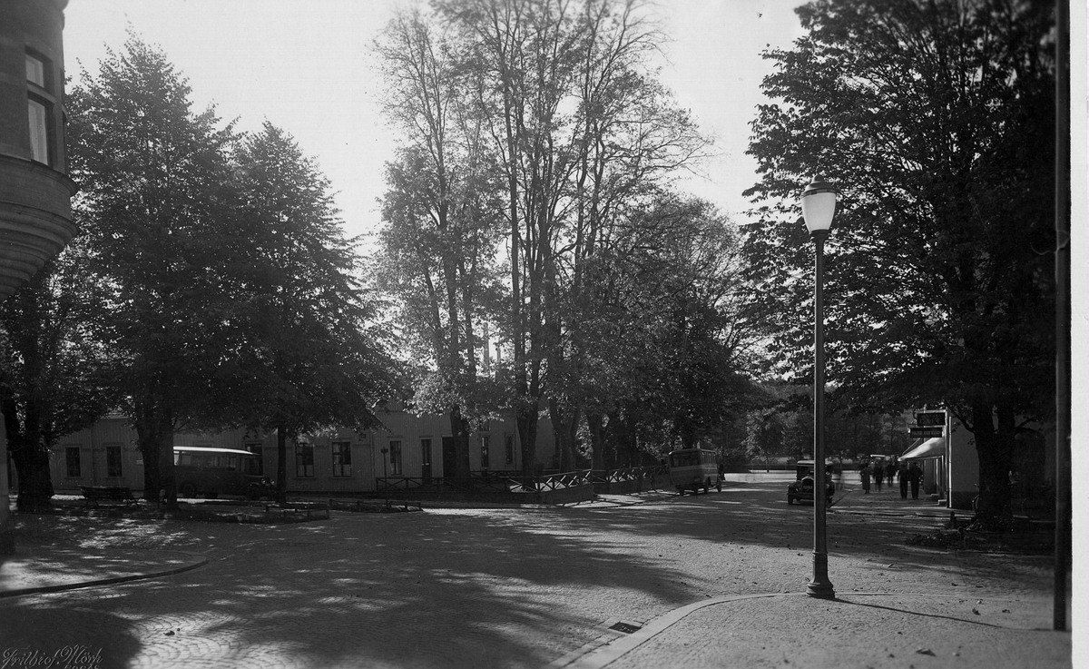 Åsbogatan mot väster x Allégatan med Sparbanken t.v. år 1931.