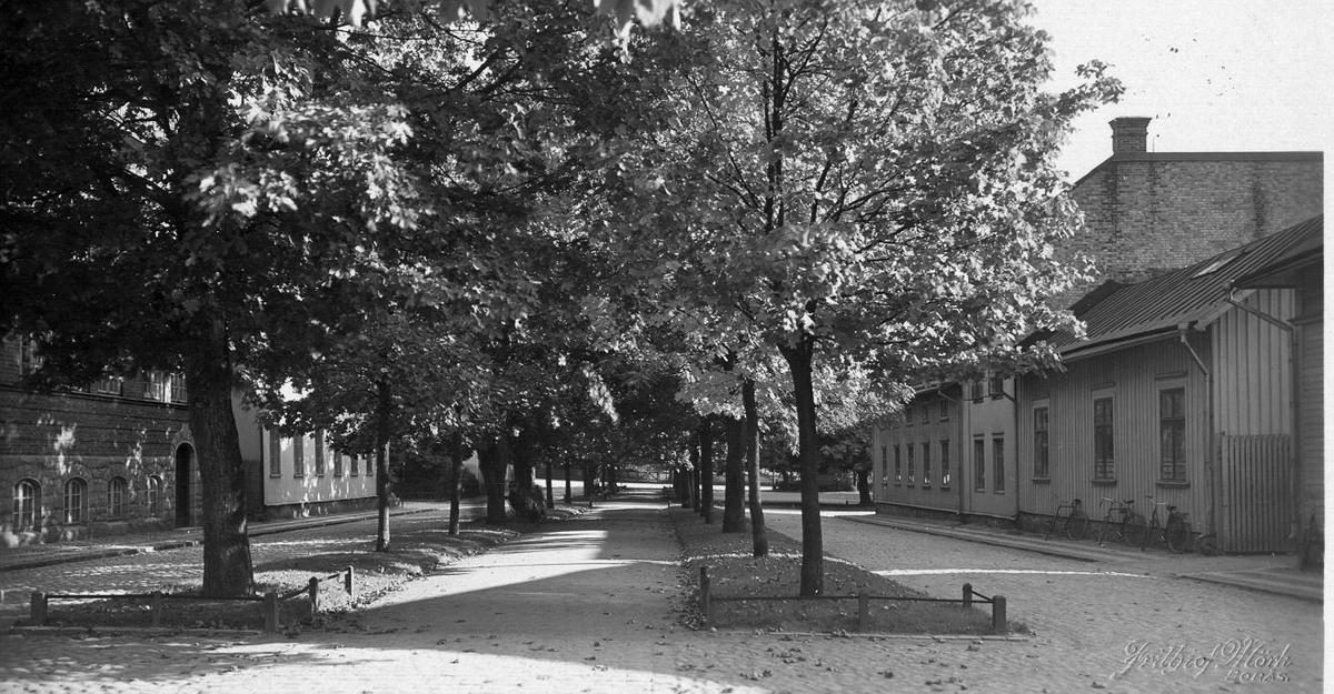 Allégatan mot söder. Kvarteret Yngve till vänster.