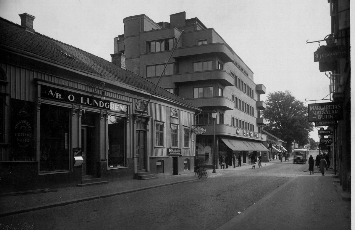 Österlånggatan mot söder med kvarteret Pomona t.v. år 1933, och längre ner Borås första varuhus EPA, byggt i funkisstil.