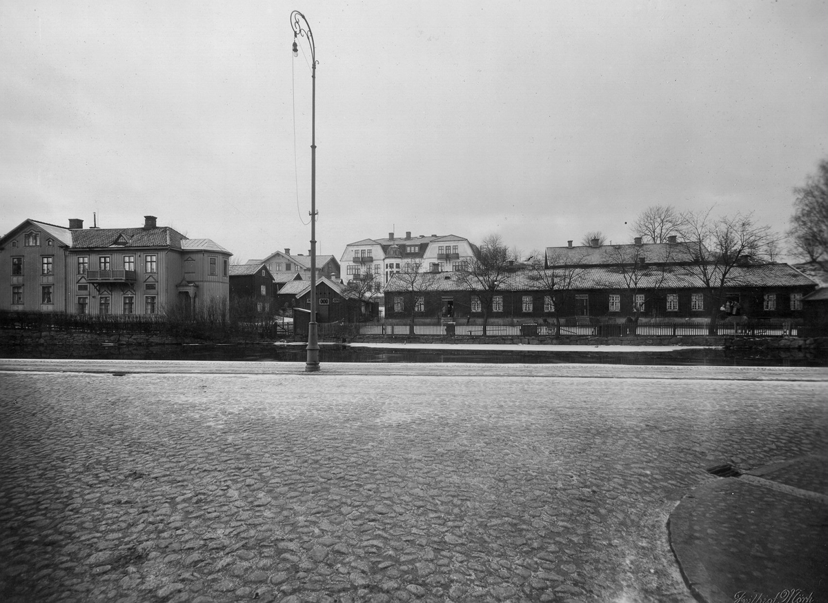 Västerbrogatan med kvarteret Strömsberg i mellanplanet år 1914.