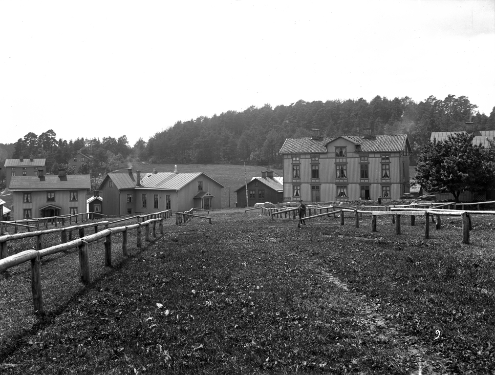 Fänabacken marknadsplats för kreatur, andra huset från vänster är Södra Missionshuset (Filadelfia).