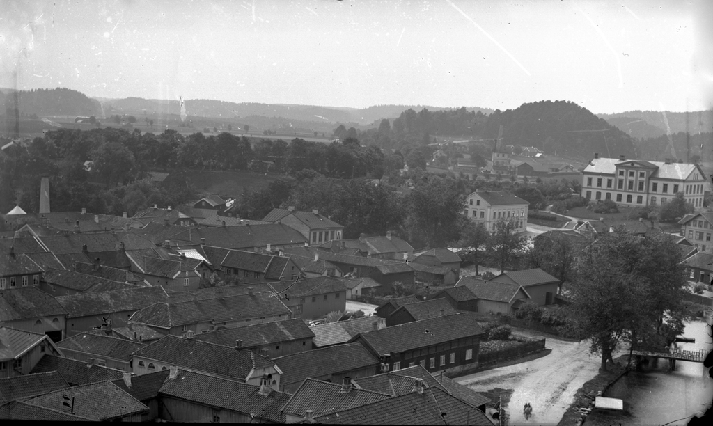 Från Carolikyrkan mot Viskan, Västerbrogatan, Hallbergsgatan och Tekniska skolan.