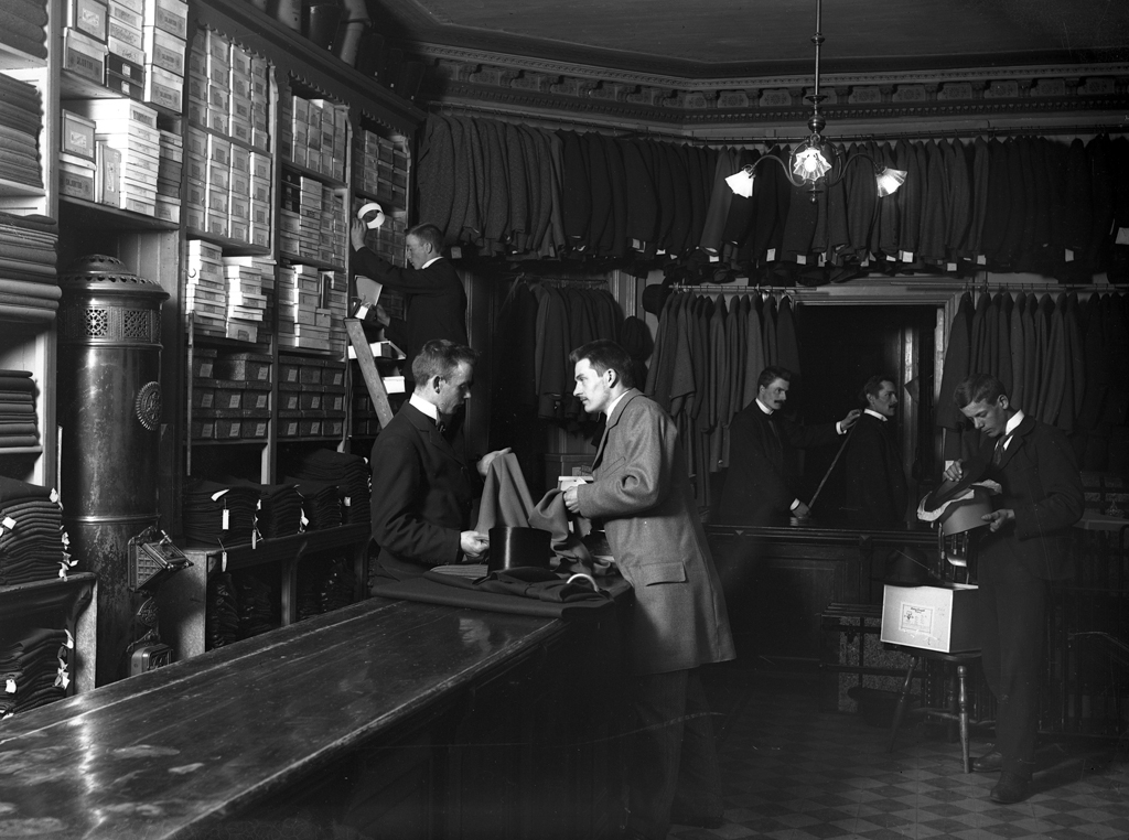 J. Johanssons herrekipering i Lindgrenska huset på Västerlånggatan.