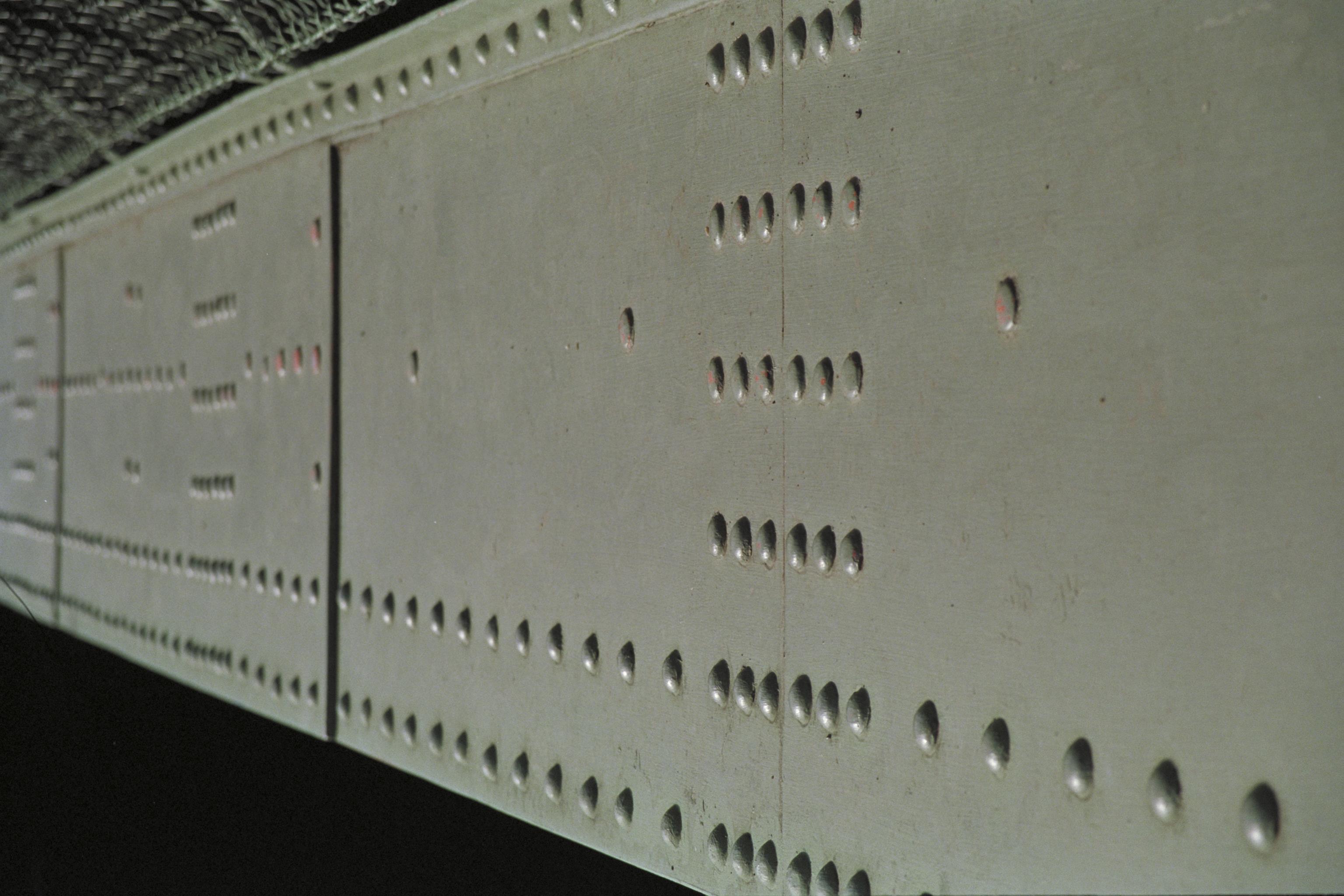 Del av akvedukten visande ett antal av alla de nitar som använts i konstruktionen.