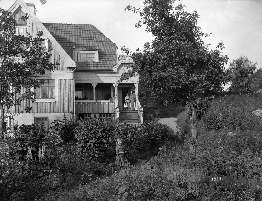 Paret Hedeaus på trappan till villan i Parkstaden.