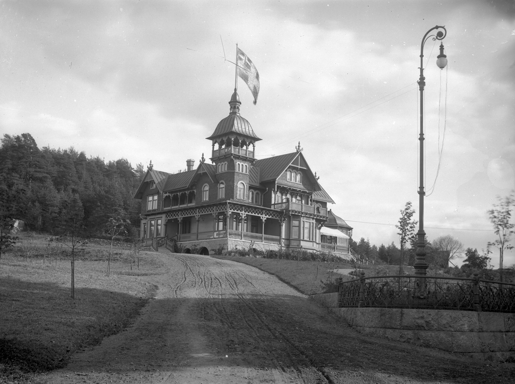 I en parkliknande trädgård på en höjd vid Druvefors uppförde ägaren till bomullspinneriet P.A. Åkerlund sin magnifika villa med femton rum och kök. Punschveranda fanns i tornbyggnaden och huset hade flera stora balkonger, dessutom tennisbana, stall och växthus i soligt läge. Åkerlund hade god utsikt över den egna fabriksanläggningen nere vid ån. Inomhus var huset smakfullt inrett med bl.a. 1600-tals glasmålningar och moderniteter som centralvärme, wc och varmvatten. Arkitekt Lars Kellman ritade huset och det var klart 1898.
