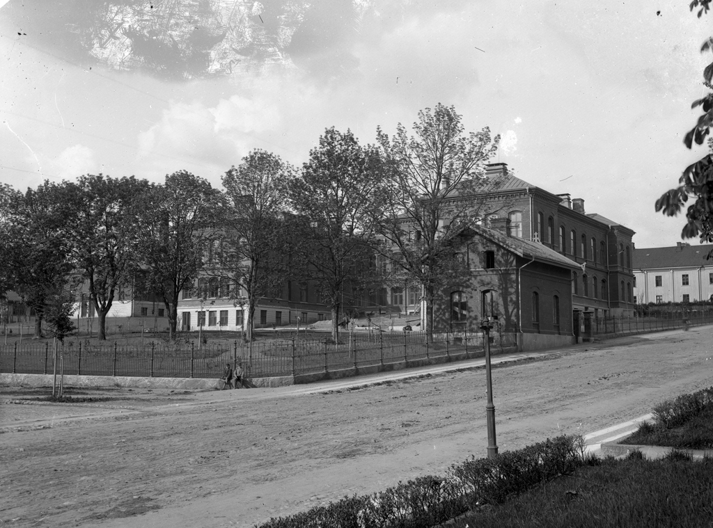 Lasarettet på Åsbogatan i kv. Idun. Huset har haft många funktioner. 1893-1930 Lasarett. 1931-1974 Stadsbibliotek. 1932-1969 Kommunal flickskola. 1933-1974 Konsthall. 1932-1950 Kommunal tandklinik. 1945-1946 Beredskapssjukhus. 1962-1984 Kommunal samskola-Åsboskolan.