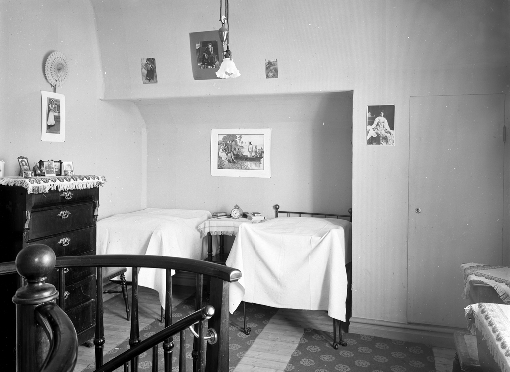 Bankdirektör Hedenlunds villa vid Annelund, interiör vindsrum gästrum.