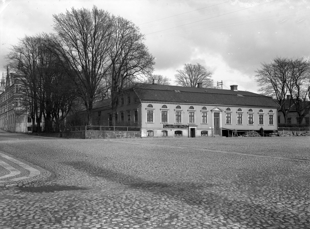 Många namn på detta hus vid Södra Torget i Borås. Utfallska, Memska, Hemgården.