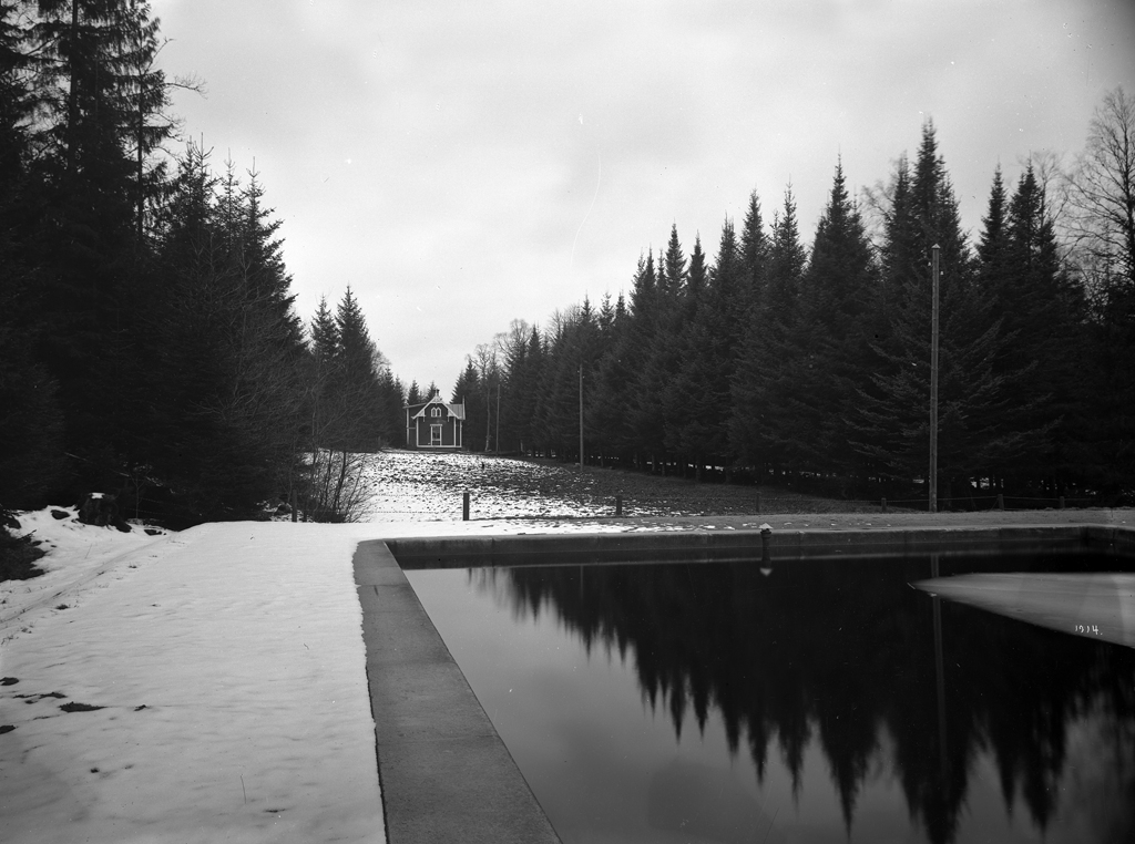Vattenverket vid Pickesjön. Damm och maskinistbostad.