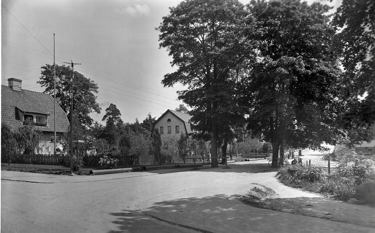 Gustav Adolfsgatan x Vedensgatan till höger med kvarteret Skytten i mellanplanet år 1926.
