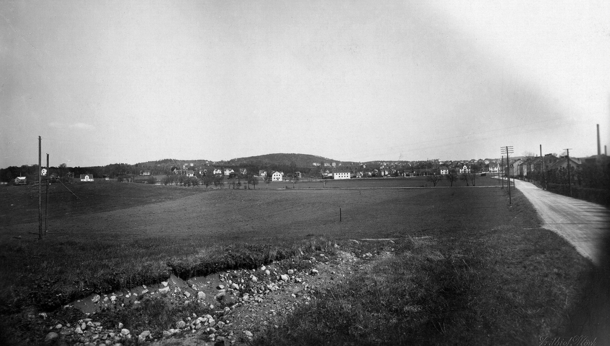 Ålgårdsvägen mot sydost. Lundby i mellanplanet år 1928.
