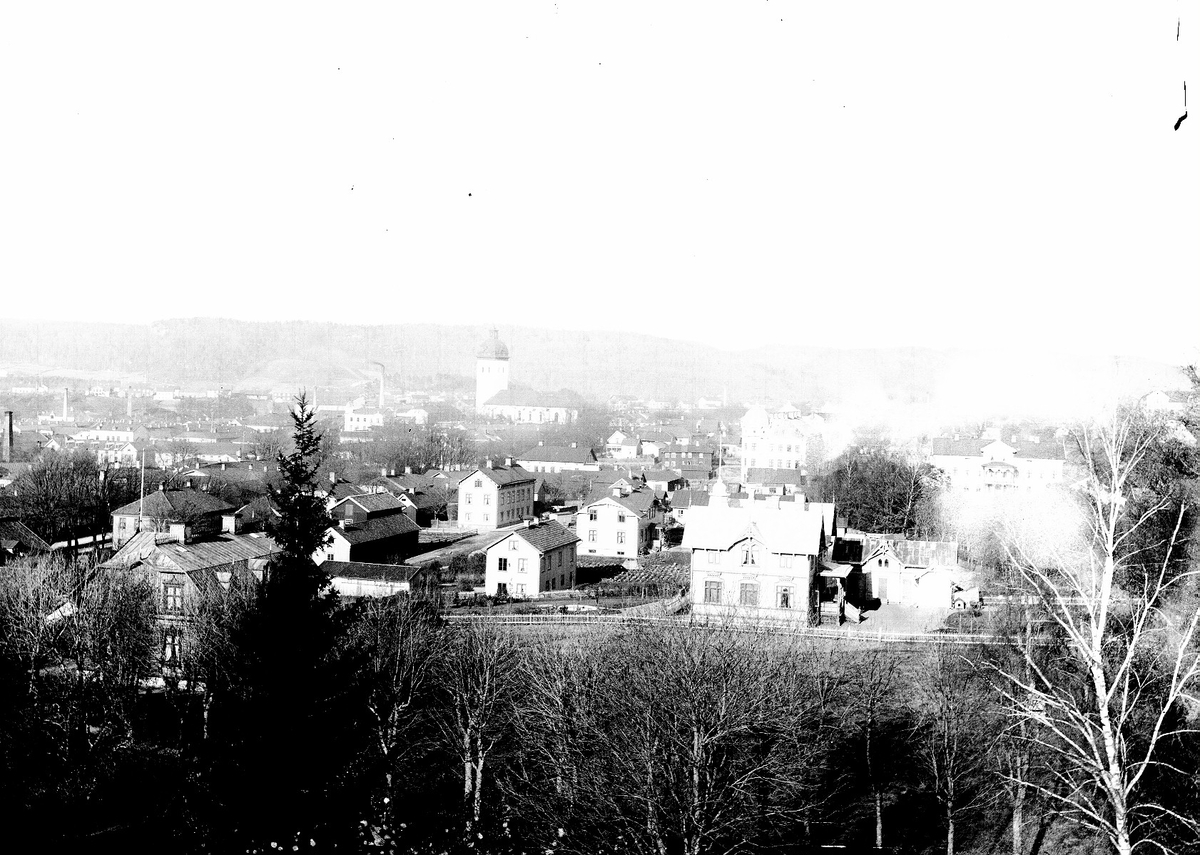 Titel: Utsikt över Borås från berget ovanför Dahltorp år 1891.