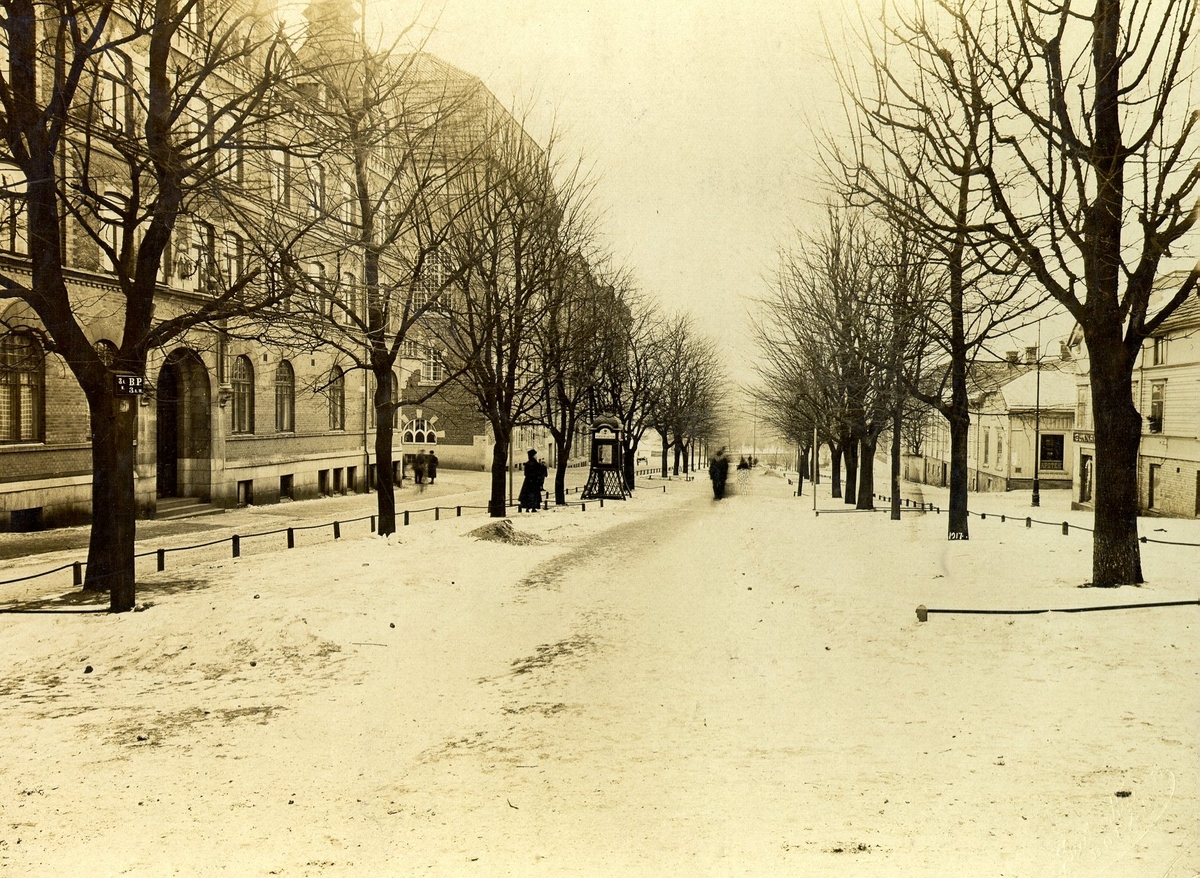 Yxhammarsgatan västerut med Hotell du Nord i kvarteret Bellona och Stadshotellet i kvarteret Bachus t.v. år 1917.
