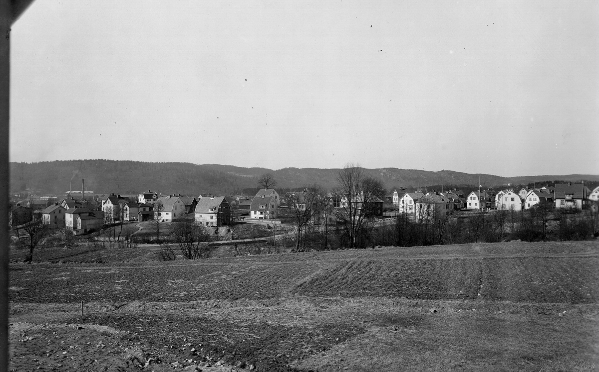 Engelbrektsgatan med hus i kvarteren Kragbjörnen och Kamelen i mellanplanet år 1925.