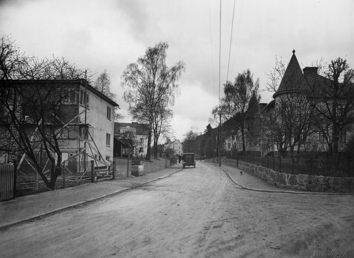 Engelbrektsgatan mot norr med Dvärggatan t.h. år 1933.