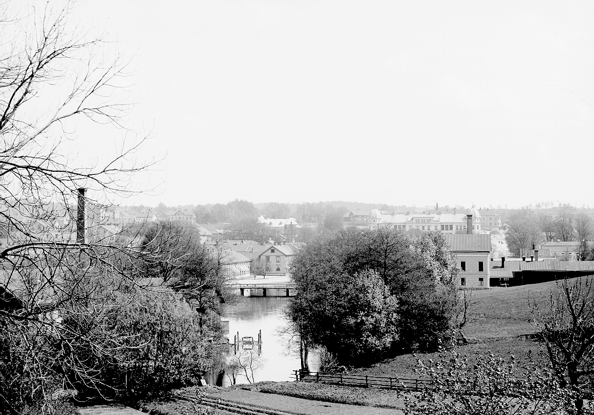 Vy över Stadsparken med Borås i bakgrunden taget fån gamla kyrkogården på våren 1981.