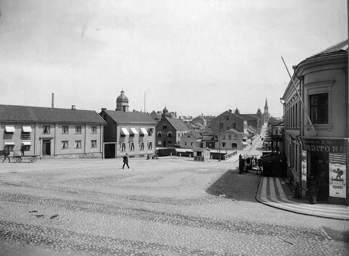 Sven-Eriksonsplatsen mot öster år 1914 med Molanders konditori t.h.