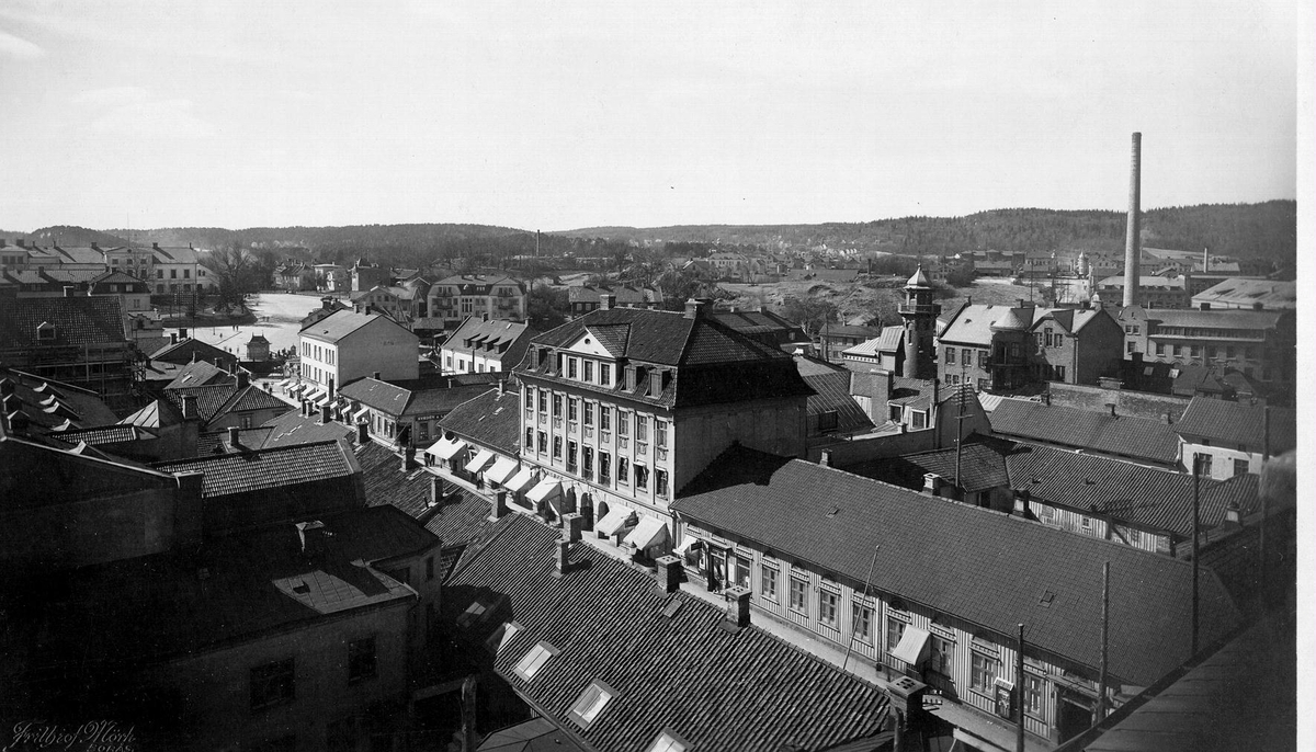 Vy över Stora Brogatan mot väster. Stora huset i mellanplanet är kvarteret Mars W-8. Foto taget år 1929.