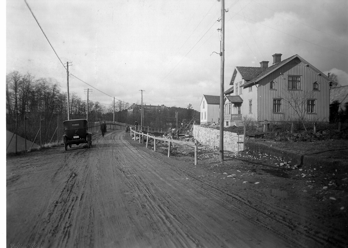 Ombyggnad av Kindsvägen, numera Gånghestersvägen. Breddning och stensättning år 1925.