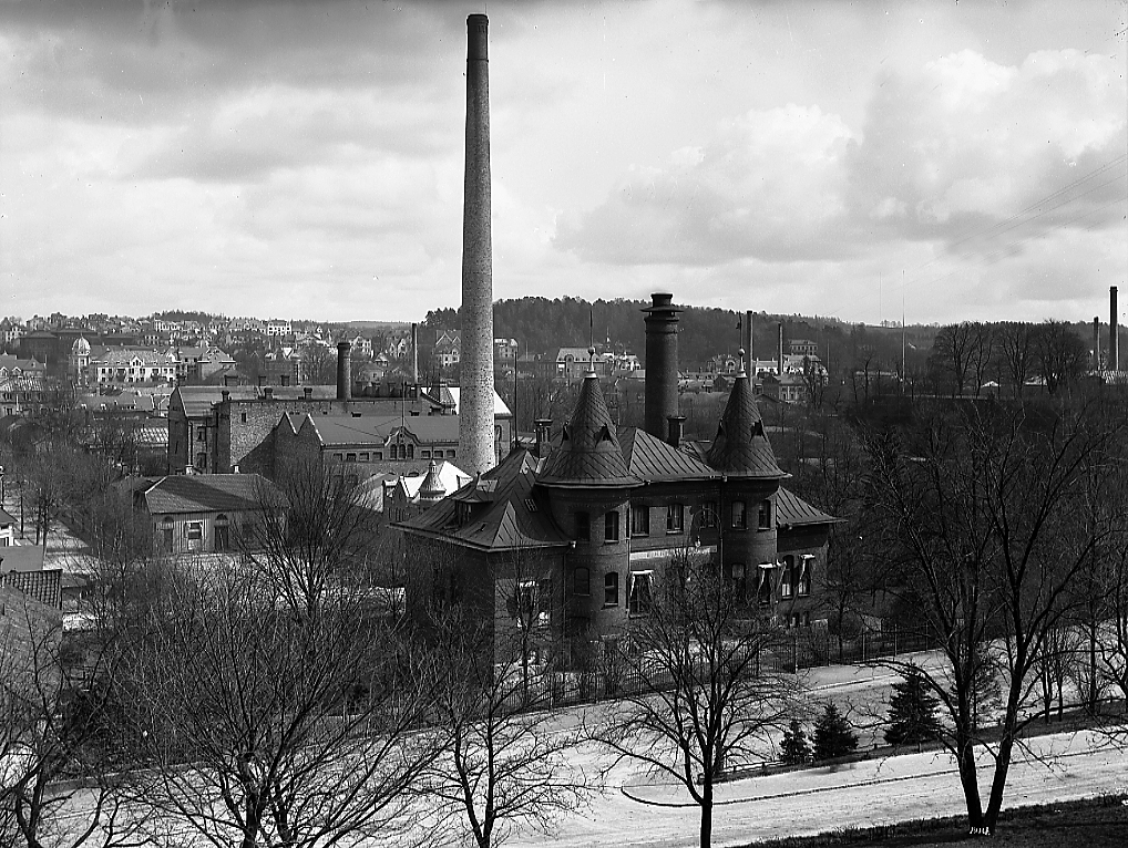 Det gamla badhuset i Stadsparken vid Sven Eriksonsgatan från Tekniska skolan.