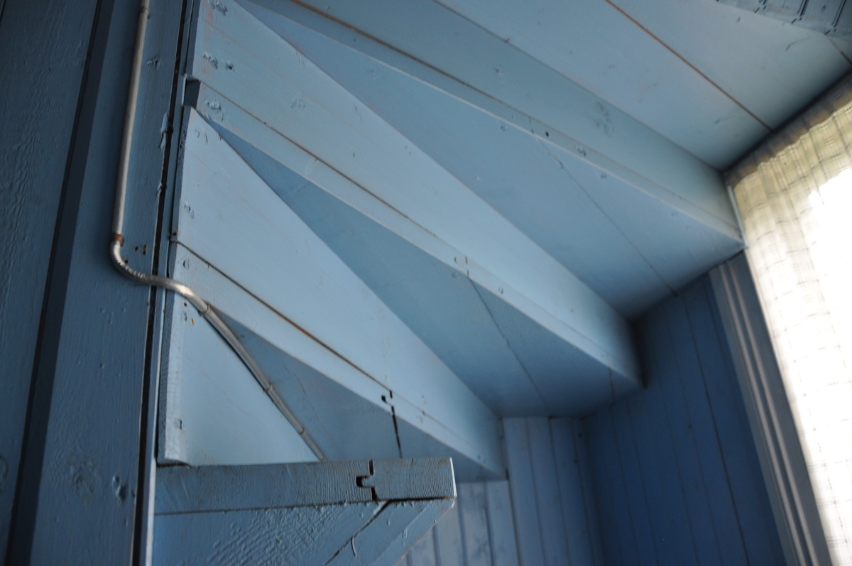 Titel: Interiör från korsplanshuset på Nygårdsgården i Bingsjö. Hallen på bottenvåningen med tillhörande trappor till källare och övervåning. Huset uppfördes 1912.