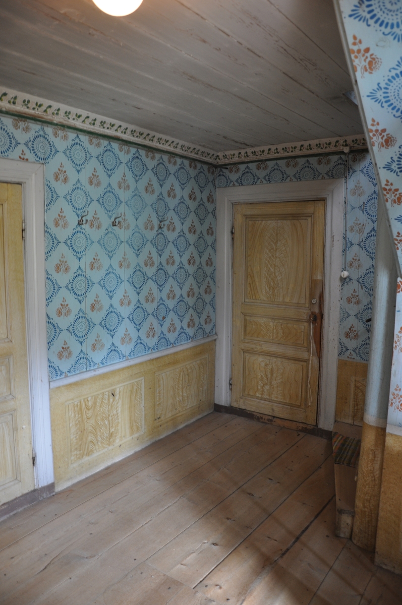 Interiör från förstugan i parstugan på Nygårdsgården i Bingsjö. Byggnaden stod ursprungligen på annan plats i byn men flyttades omkring 1860–1861 till nuvarande plats som då var åkermark.