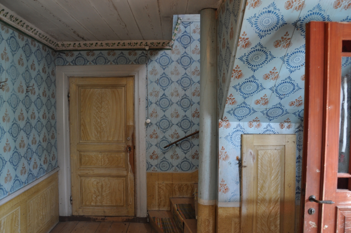 Interiör från förstugan i parstugan på Nygårdsgården i Bingsjö. Byggnaden stod ursprungligen på annan plats i byn men flyttades omkring 1860–1861 till nuvarande plats som då var åkermark.
