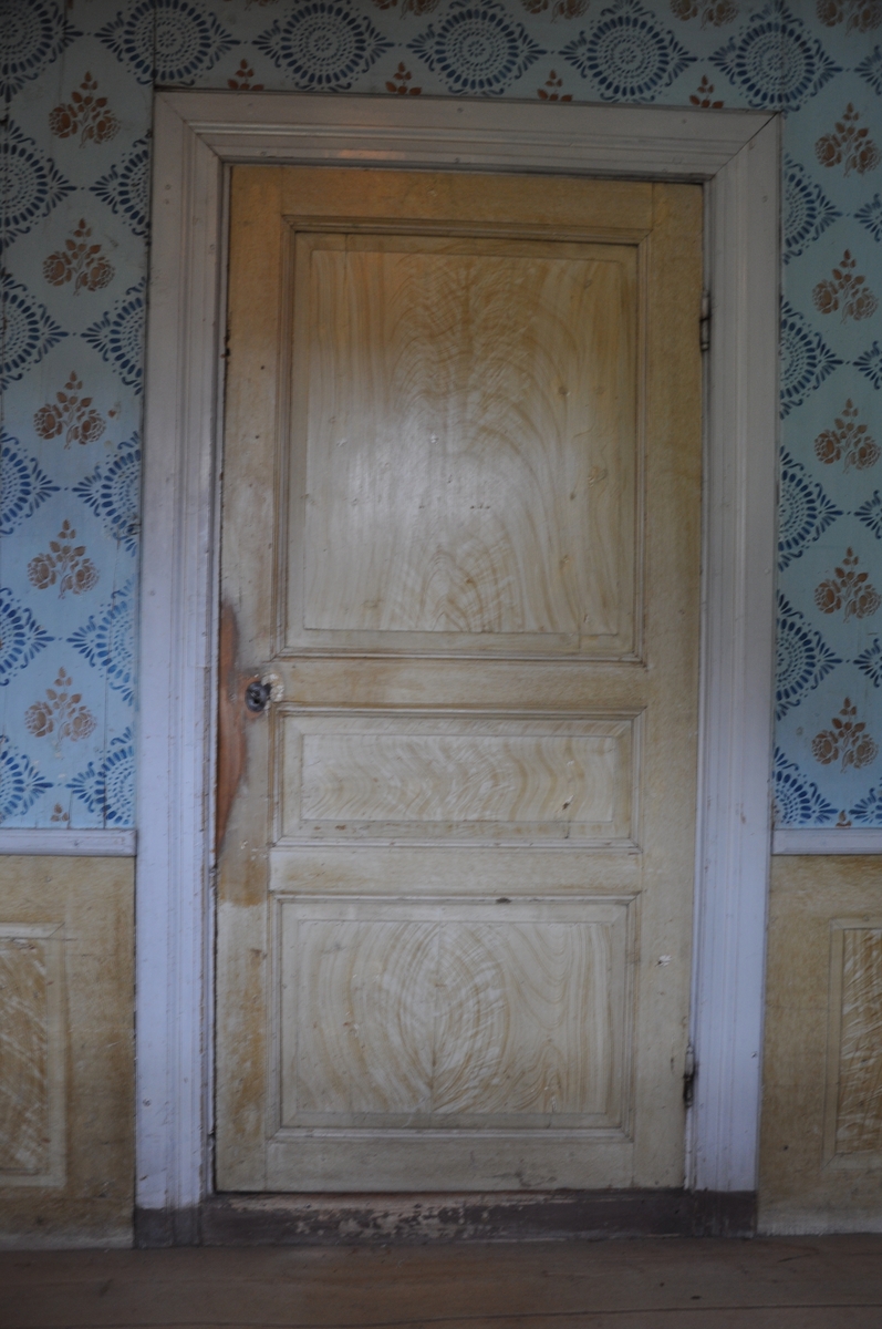 Titel: Interiör från förstugan i parstugan på Nygårdsgården i Bingsjö. Byggnaden stod ursprungligen på annan plats i byn men flyttades omkring 1860–1861 till nuvarande plats som då var åkermark.