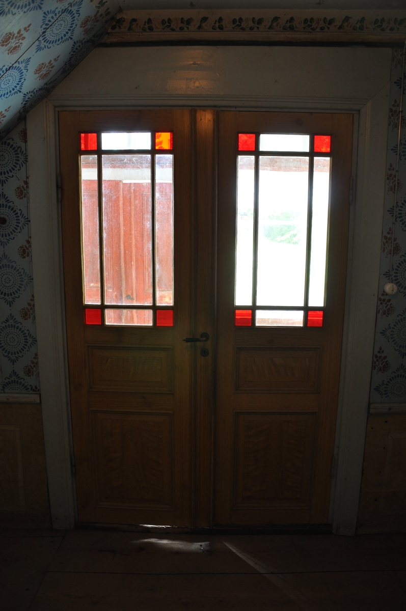 Interiör från förstugan i parstugan på Nygårdsgården i Bingsjö. Byggnaden stod ursprungligen på annan plats i byn men flyttades omkring 1860–1861 till nuvarande plats som då var åkermark.