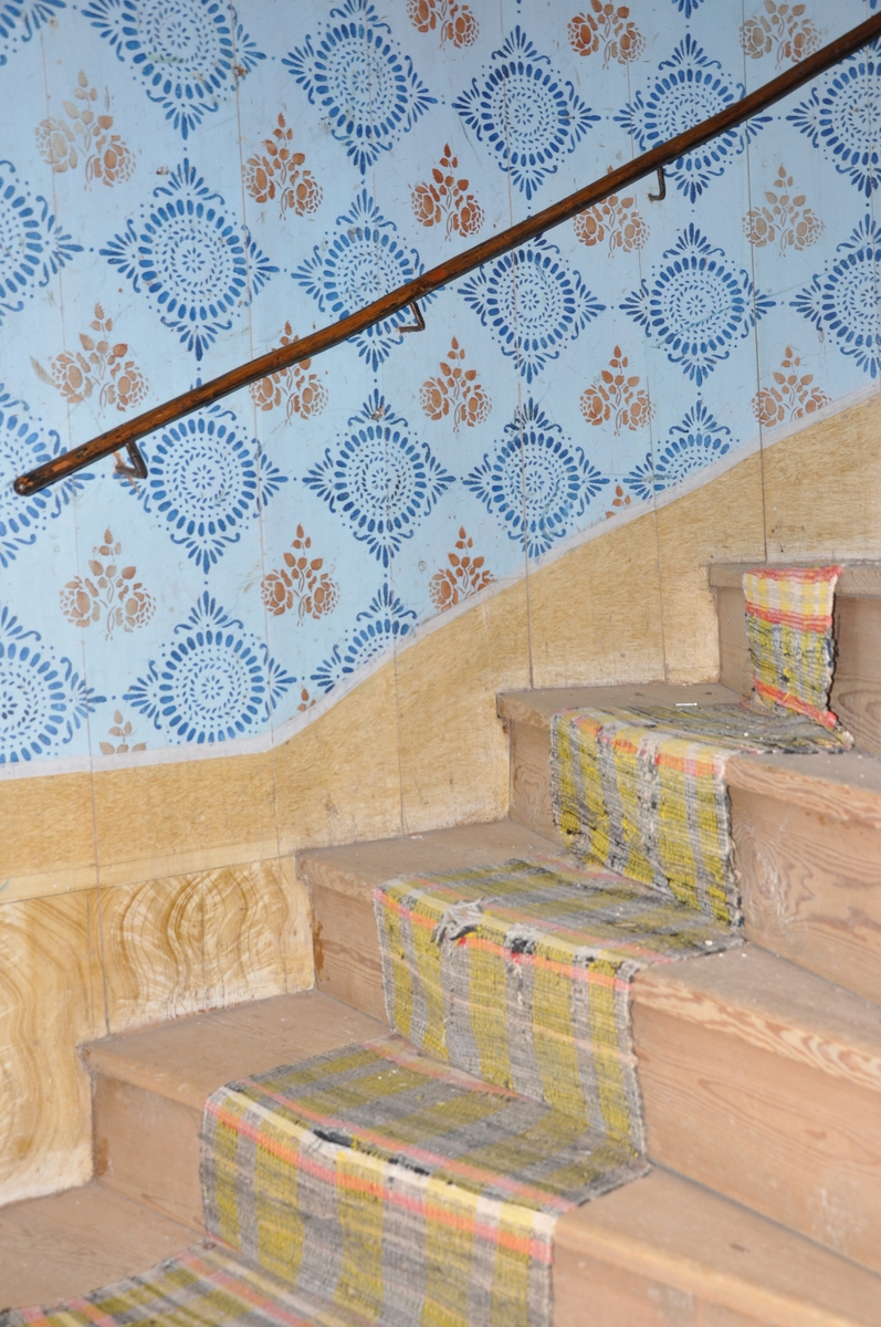 Titel: Interiör från förstugan i parstugan på Nygårdsgården i Bingsjö. Byggnaden stod ursprungligen på annan plats i byn men flyttades omkring 1860–1861 till nuvarande plats som då var åkermark.
