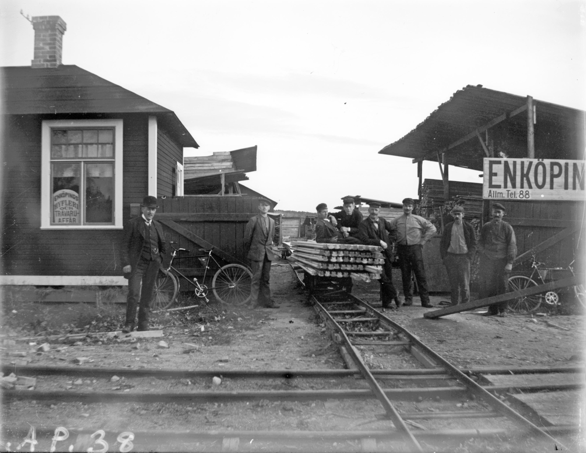 Manskap vid Enköpings Hyfleri & Trävaruaffär C. A. Berggren, hamnområdet, Enköping