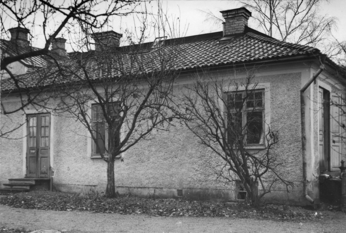Enköping, kvarteret Bleckslagaren nr 2, Kryddgårdsgatan 27 - Östra Ringgatan 28, uthusfasad från ingången till huvudfastigheten, mot söder