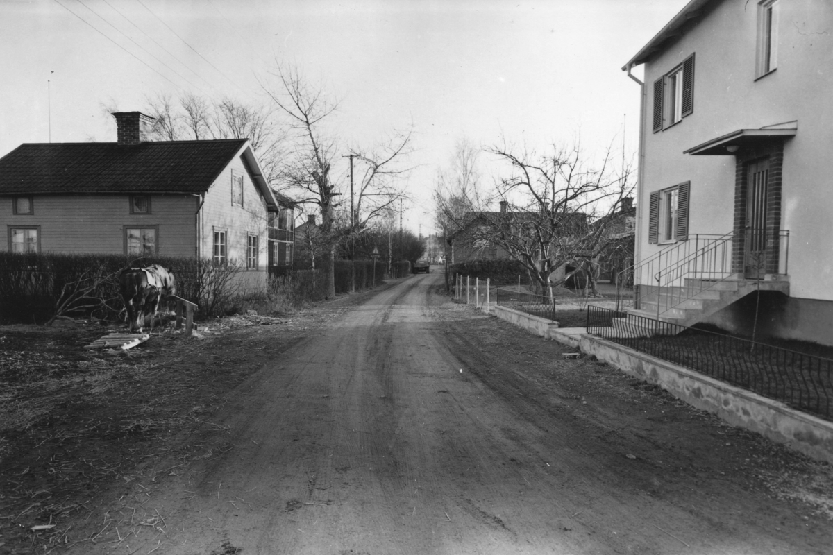 Enköping, Westerlundsgatan, från Långgatan, mot öster, Eklunds glasmästeri till höger.