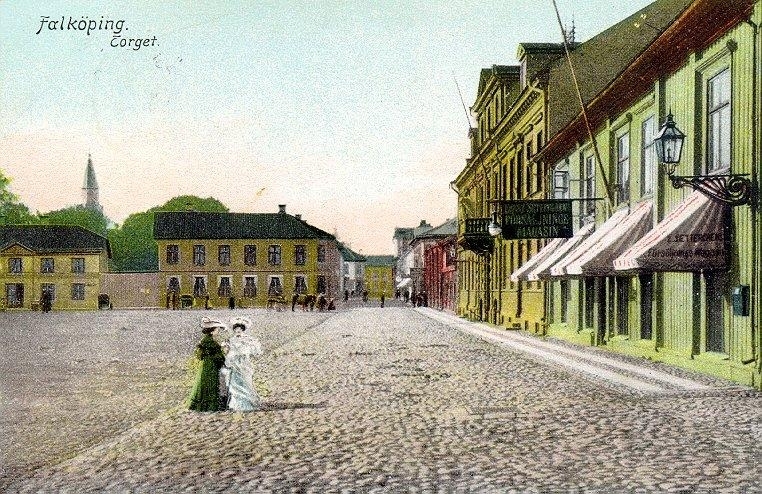 Stora torget. Stadens torg omkring sekelskiftet 1900. Obs. kullerstensbeläggningen.