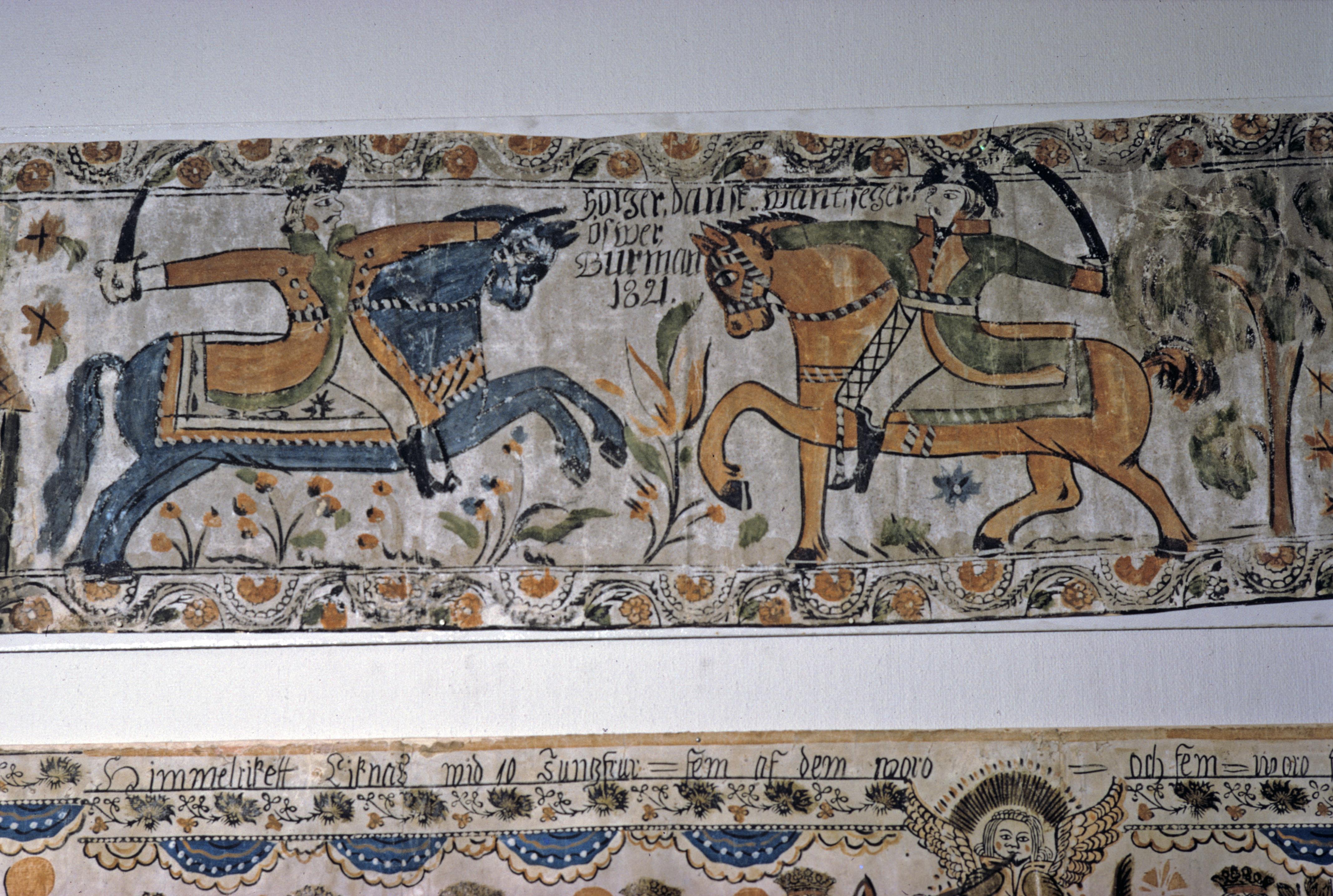 "Holger Dansk want seger öfwer Burman" en bonad av Carl Reinic Rosenberg 1821, med motiv från en omtyckt folksaga. Till bården har han använt tryckstockar.