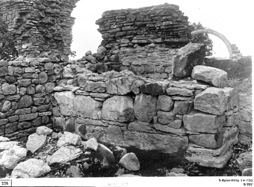 Hörnet mellan s. sidoskeppets sydmur och s. kapellets (tvärskeppets) v. mur.