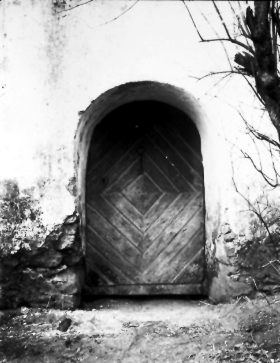 Vistaholm. Dörren till Svärdskölds kyrka.