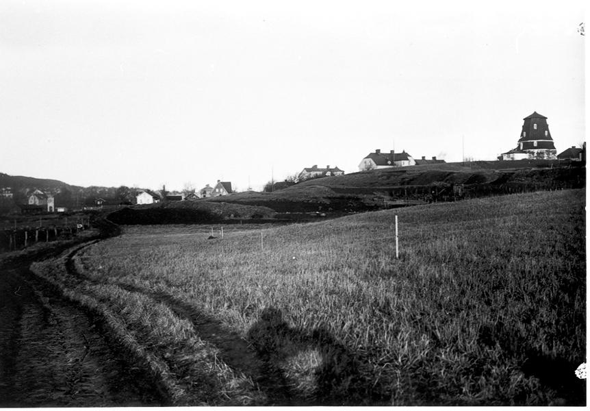 Vasagatan utstakad genom gärdet väster om samrealskolan, sedd från söder. Vid nödhjälpsarbetenas påbörjande.