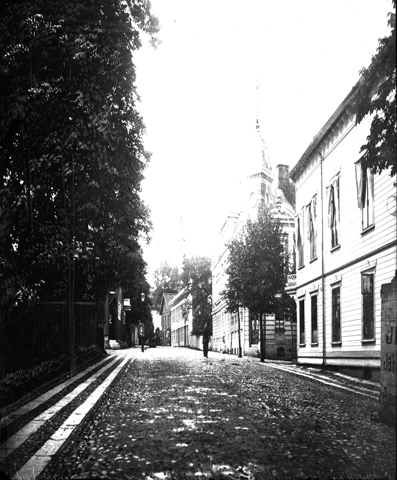 Järnvägsgatan (nuv. S:t Olofsgatan) i riktning mot kyrkan.