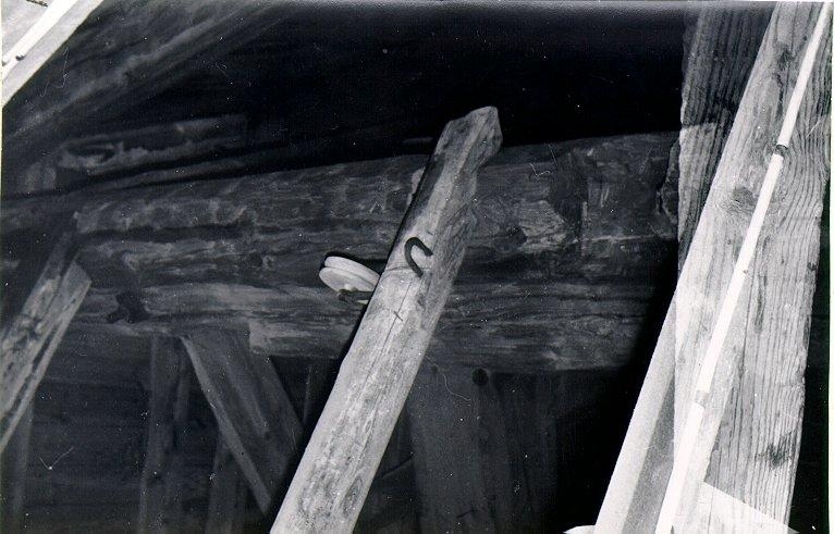 S:t Olofs kyrka. Klockrummet. En löptrissa med styrhaspel, som troligen varit för det gamla urverket.
