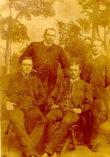Fyra goda vänner på 1880-talet. Stående: Hj.Trolander och G.Jungmarker, sittande: G.Blomgren och Stanislaus von Mosczinsky.